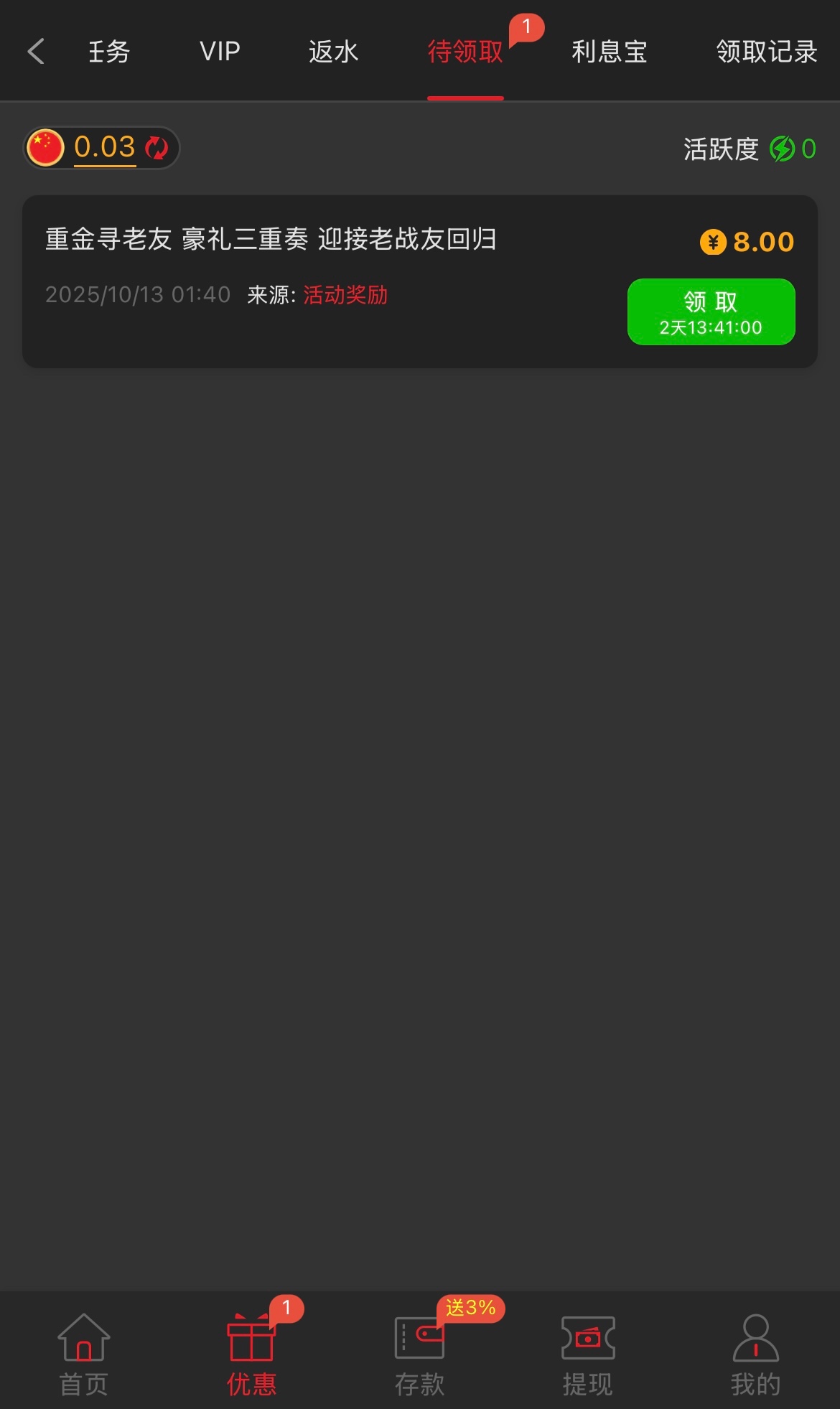 充值过的兄弟可以登入上去看看优惠里有没有